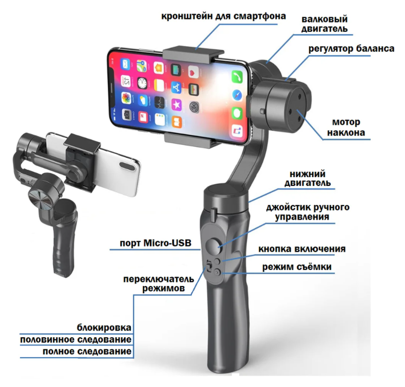 При выборе электронного стабилизатора обратите внимание на минимальный и максимальный вес оборудования. Лёгкий гимбал для экшн-камеры не справится с тяжёлой зеркалкой, а на тяжёлый стабилизатор с мощными моторами не получится поставить смартфон.