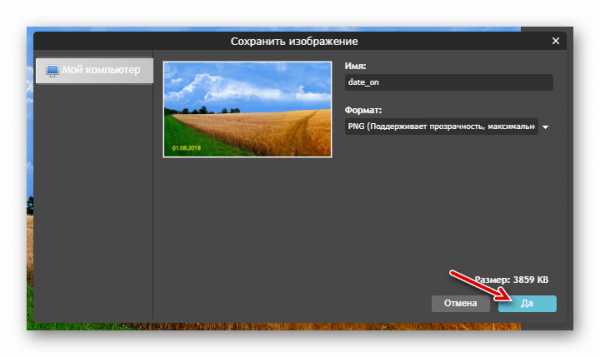 Во всплывающем окне укажите параметры сохраняемого изображения и щелкните по кнопке «Да».