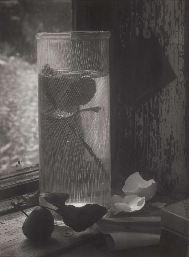Окно становилось отражающим фоном, обрамляющим искусно расположенные предметы, такие как яйцо, тарелка, галька или цветы. Особенно Судек любил фотографировать стеклянные предметы и преломление в них.