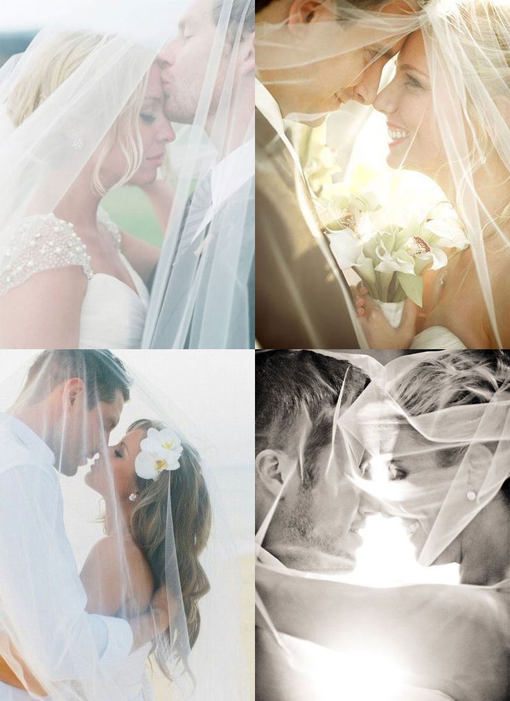Дрянный способ свадебного фотографа: сделайте шаг назад и возьмитесь за руки со своим партнером, накинув ткань на обе головы. Улыбки (или поцелуи) будут видны сквозь пелену!