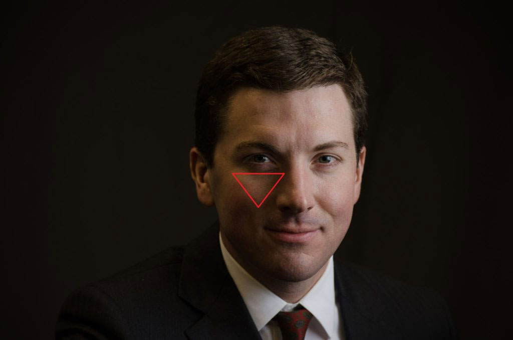 Этот побочный продукт известен как «Золотой треугольник». Рембрандт понимал, что, если бы он мог наблюдать Золотой треугольник со своей точки зрения, ключевой свет придавал бы наиболее лестную и драматическую форму его объекту, эффективно обрамляя выражение, определяя аспекты структуры носа и щек. Конечно, все результаты субъективны, но, если мы пытаемся применить освещение в стиле Рембрандта, наблюдение за золотым треугольником является одним из признаков того, что мы преуспели. «Золотой треугольник».