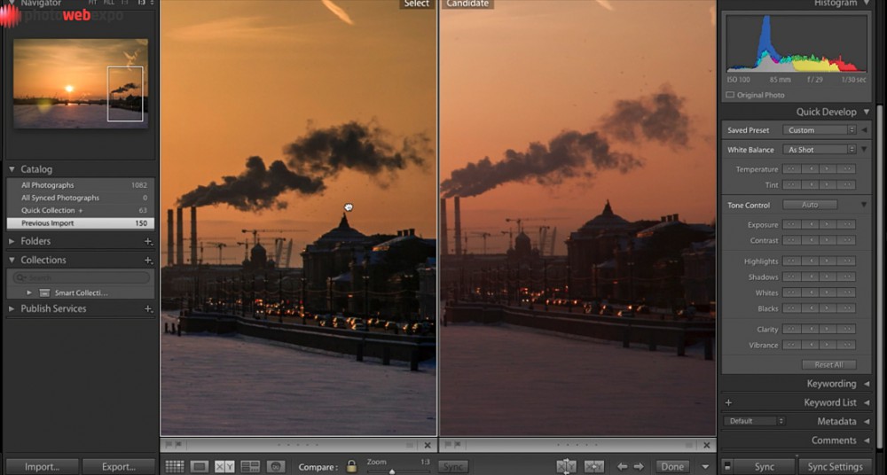 - Импортируйте изображения в Adobe Lightroom и обязательно отделите таймлапс фото от всего, что вы сделали в этот день.