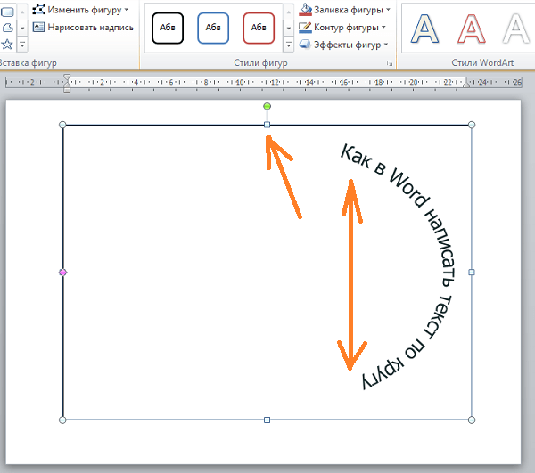 Перемещайте маркеры, которые есть на рамке блока, чтобы написанные слова дугой в Ворде выглядели так, как нужно Вам.