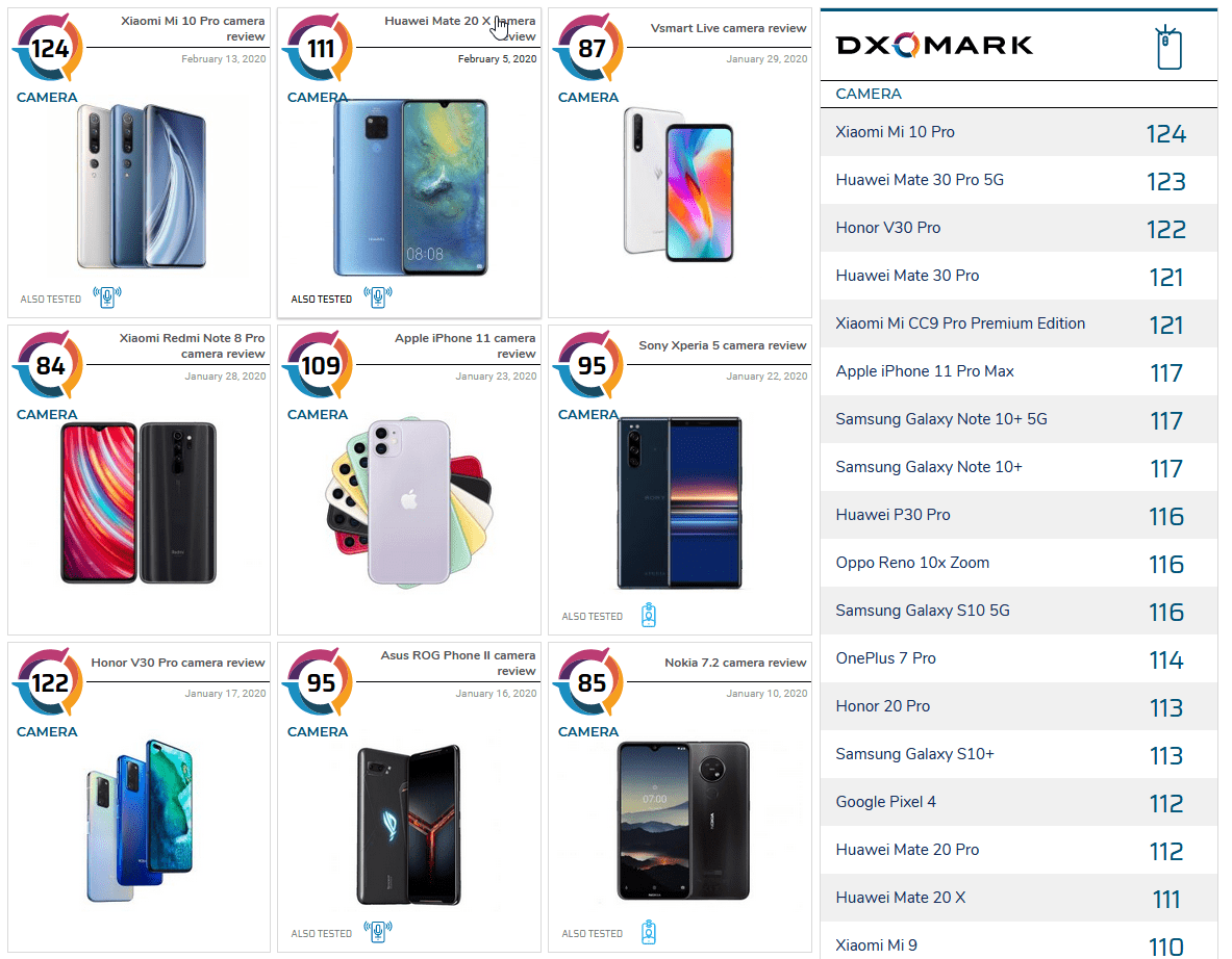 Новые Samsung Galaxy Note 10 5G, Huawei Mate 30 Pro и OnePlus 7 Pro занимают лидирующие позиции или близки к ним. Кажется, существует бесконечный цикл «лучший телефон DxOMark» с каждым флагманским выпуском. Возможно, этого и следовало ожидать, но оценки компании не всегда бесспорны. В любом случае, растущая зависимость от рейтинга одной компании для оценки качества камеры немного проблематична для отрасли, особенно если вы понимаете, что DxOMark занимается не только ранжированием камер телефонов.