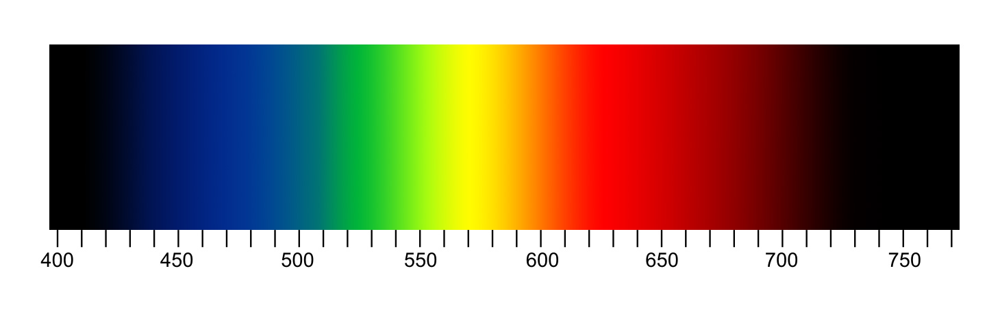 Длина волны каждого цвета измеряется в нанометрах.