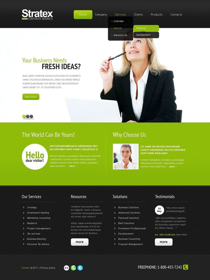 Бизнес-сайты всегда должны соответствовать стилю фирменного стиля компании; если вы технологическая компания для молодежи, стиль может использовать футуристические визуальные эффекты и неформальный язык, тогда как если вы юридическая фирма для постоянных клиентов, вам могут понадобиться традиционные визуальные эффекты и профессиональный язык.