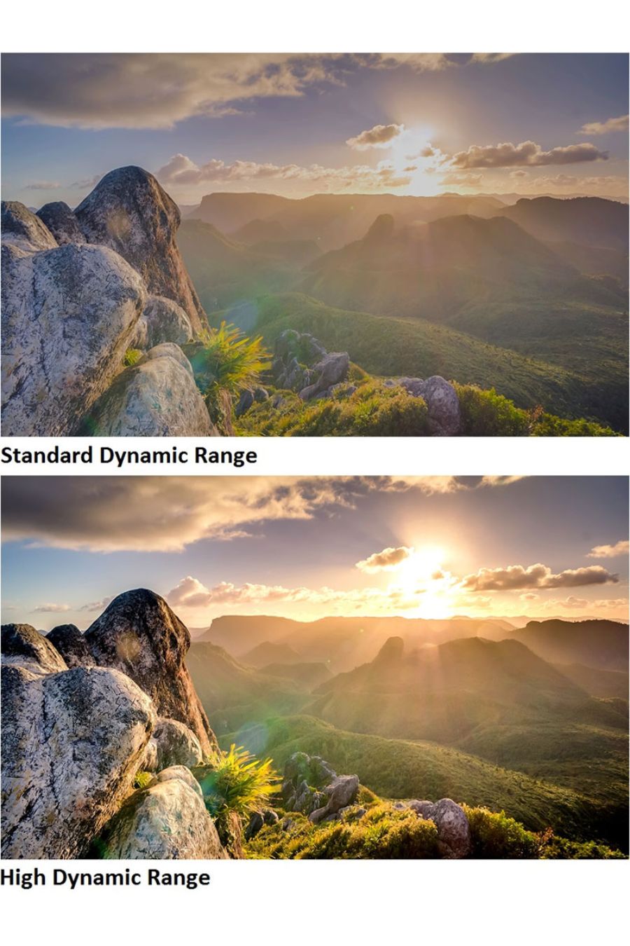 Высокий динамический диапазон, как можно догадаться, означает более высокий динамический диапазон, чем SDR; более конкретно, HDR-дисплей сможет воспроизводить более широкую цветовую гамму, чем SDR-дисплей. Для вас это означает более яркое изображение с большим количеством деталей и меньшим количеством цветовых полос.Для достижения этого более высокого динамического диапазона должны быть выполнены некоторые требования, которые зависят от технологии.