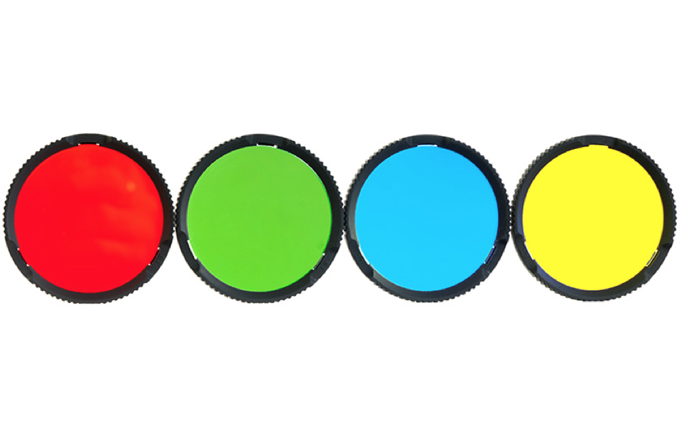 Светофильтр желтый светлый задерживает ультрафиолетовые, фиолетовые лучи и пропускает синие, голубые, зеленые, желтые, оранжевые, красные лучи.