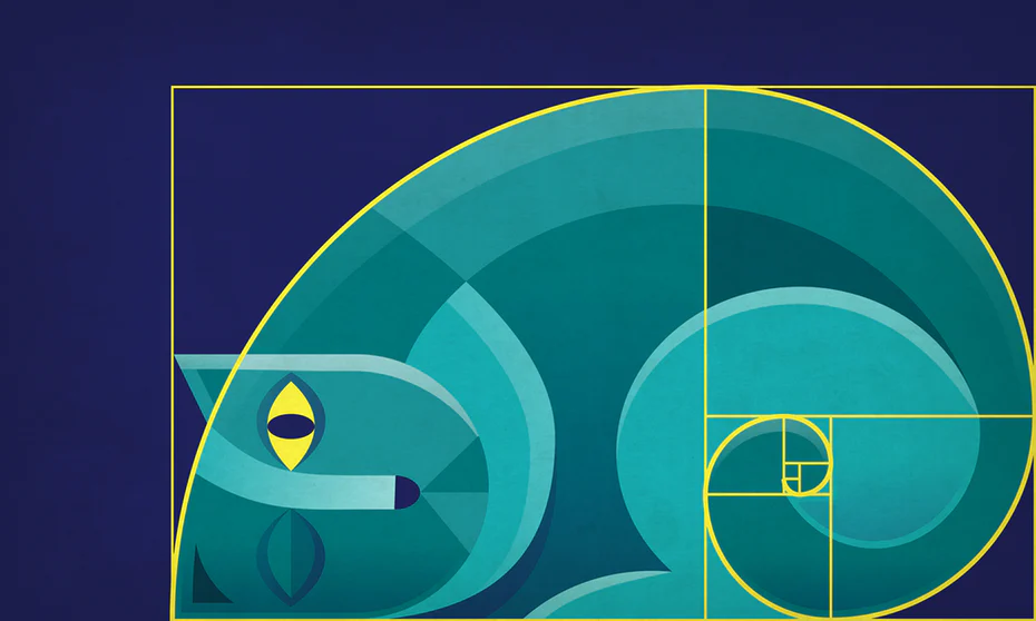 Если вы посмотрите на изображение ракушки, то увидите наглядный пример этого правила — каждое последующее деление меньше предыдущего в соотношении золотой пропорции: