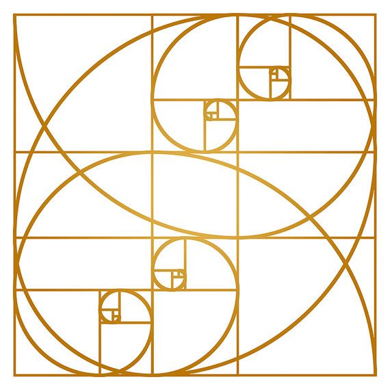 Геометрическая последовательность золотого сечения будет постоянно создавать бесконечный запас идеальных прямоугольников и квадратов, также известных как золотые прямоугольники и квадраты. Эта геометрическая форма обеспечивает, казалось бы, идеальную эстетическую гармонию, когда речь идет о композиции элементов в пространстве. При этом композиция с золотым сечением является скорее спекуляцией, поскольку она не всегда гарантирует, что использование этого соотношения приводит к идеальному эстетическому балансу.