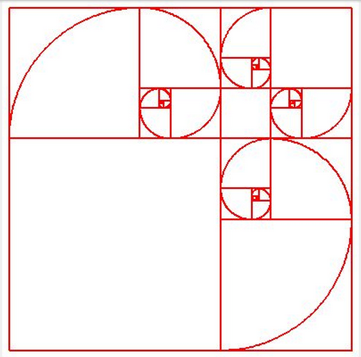 Следующая часть предназначена скорее для развлечения, чтобы показать вам, как золотое сечение делает квадраты и прямоугольники неразделимыми. Это потому, что геометрия последовательности устанавливает переплетение двух форм.